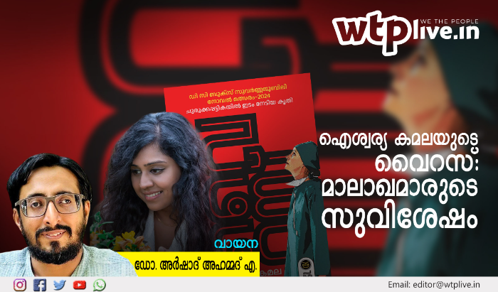ഐശ്വര്യ കമലയുടെ പ്രഥമനോവലായ വൈറസിൽ ഏറ്റവും കൂടുതൽ തവണ വായിച്ച പദമാണ് ആത്മാദരം. ഭൂരിപക്ഷം വരുന്ന ദുർബല വിഭാഗങ്ങളെ നിർദയമായും നിർഭയമായും അടക്കിനിർത്താനും...